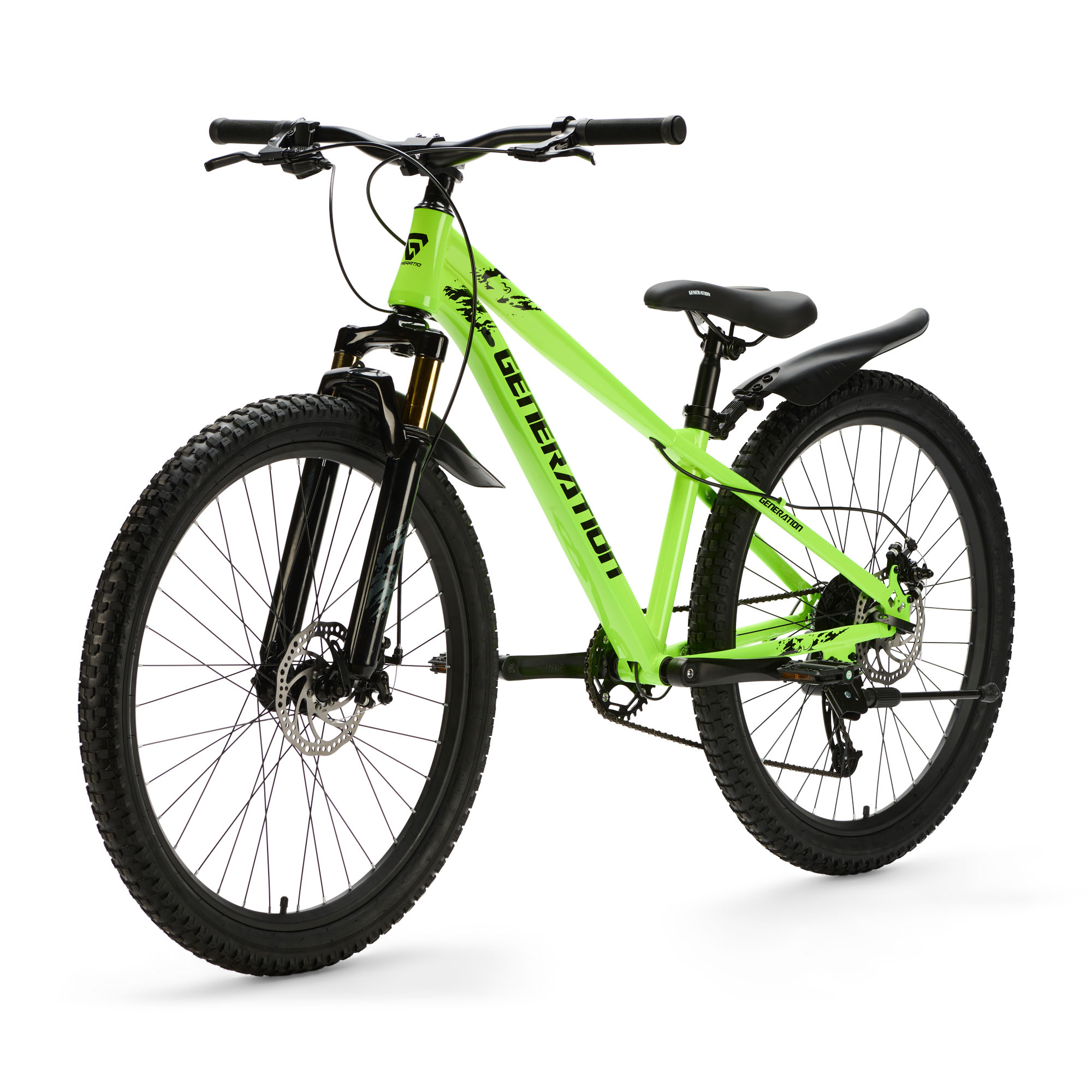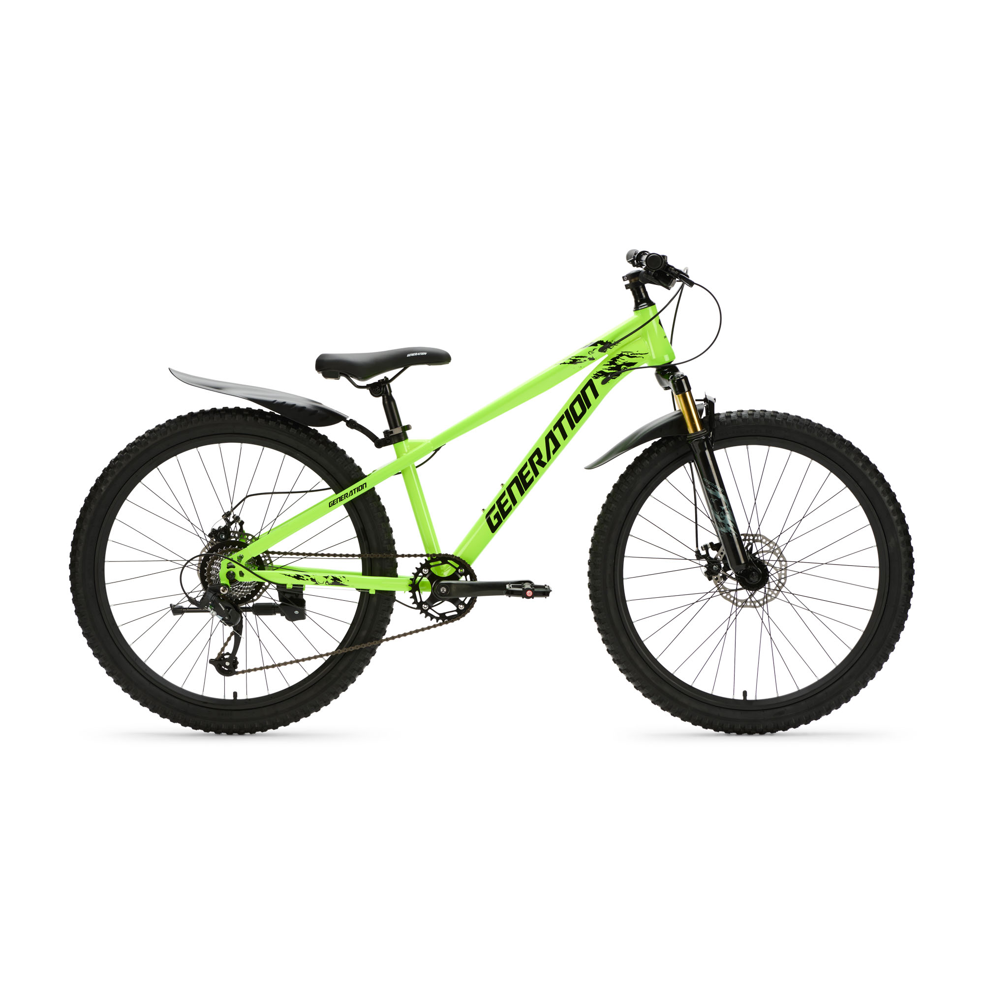 De Generation X8 Mountainbike 26 inch Neon Geel met spatborden is ontworpen met oog voor comfort en veiligheid. Het zadel kan eenvoudig worden aangepast aan de lengte van je kind, waardoor de fiets meegroeit en jarenlang gebruikt kan worden. Het brede en stevige frame zorgt voor stabiliteit tijdens het rijden en een prettige zithouding, zelfs op langere ritten.