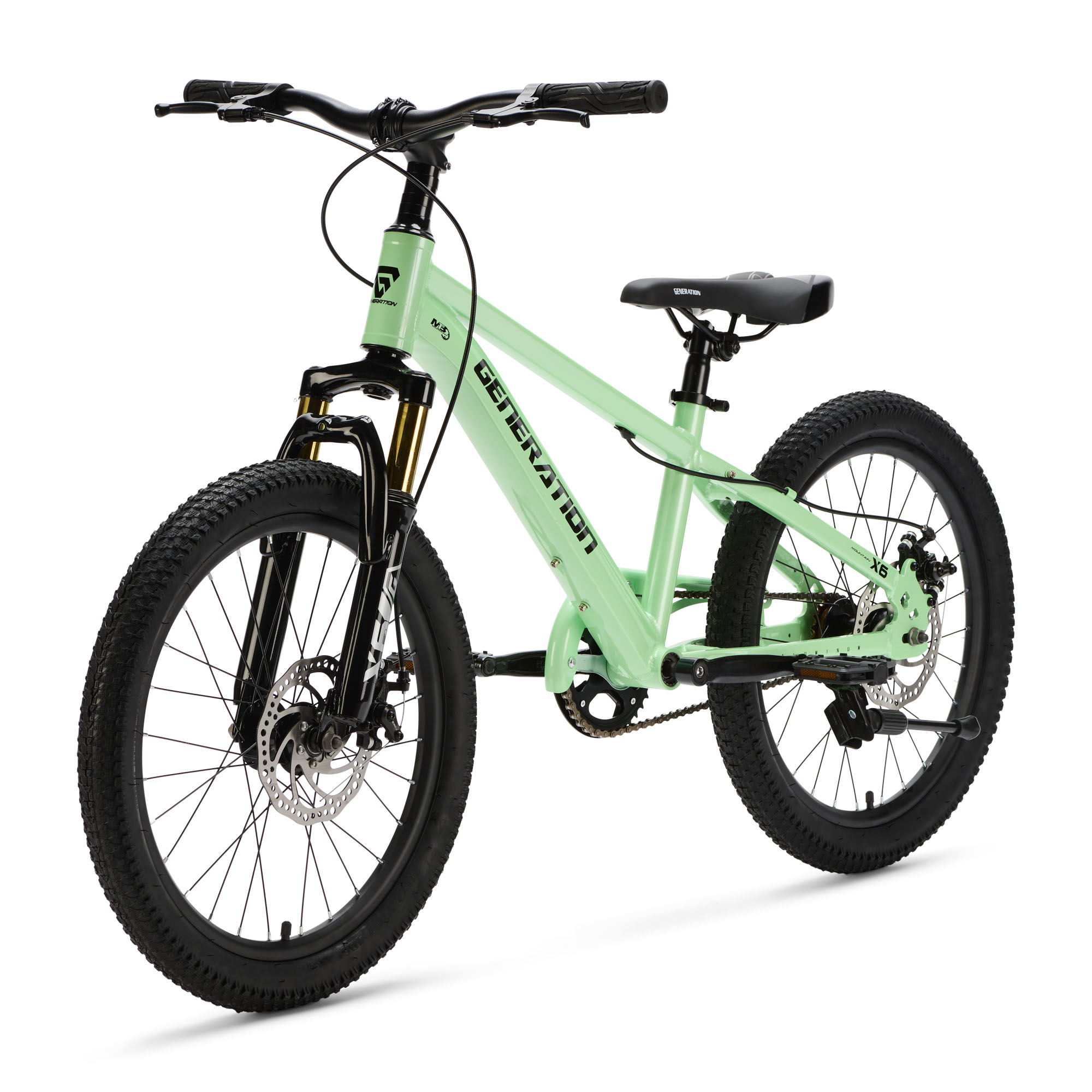 De Generation X6 20 inch Mintgroen is een lichte en sportieve kinderfiets met aluminium frame en krachtige schijfremmen. Perfect voor kinderen van 6 tot 8 jaar die houden van een stoere mountainbike look en comfortabel dagelijks willen fietsen.